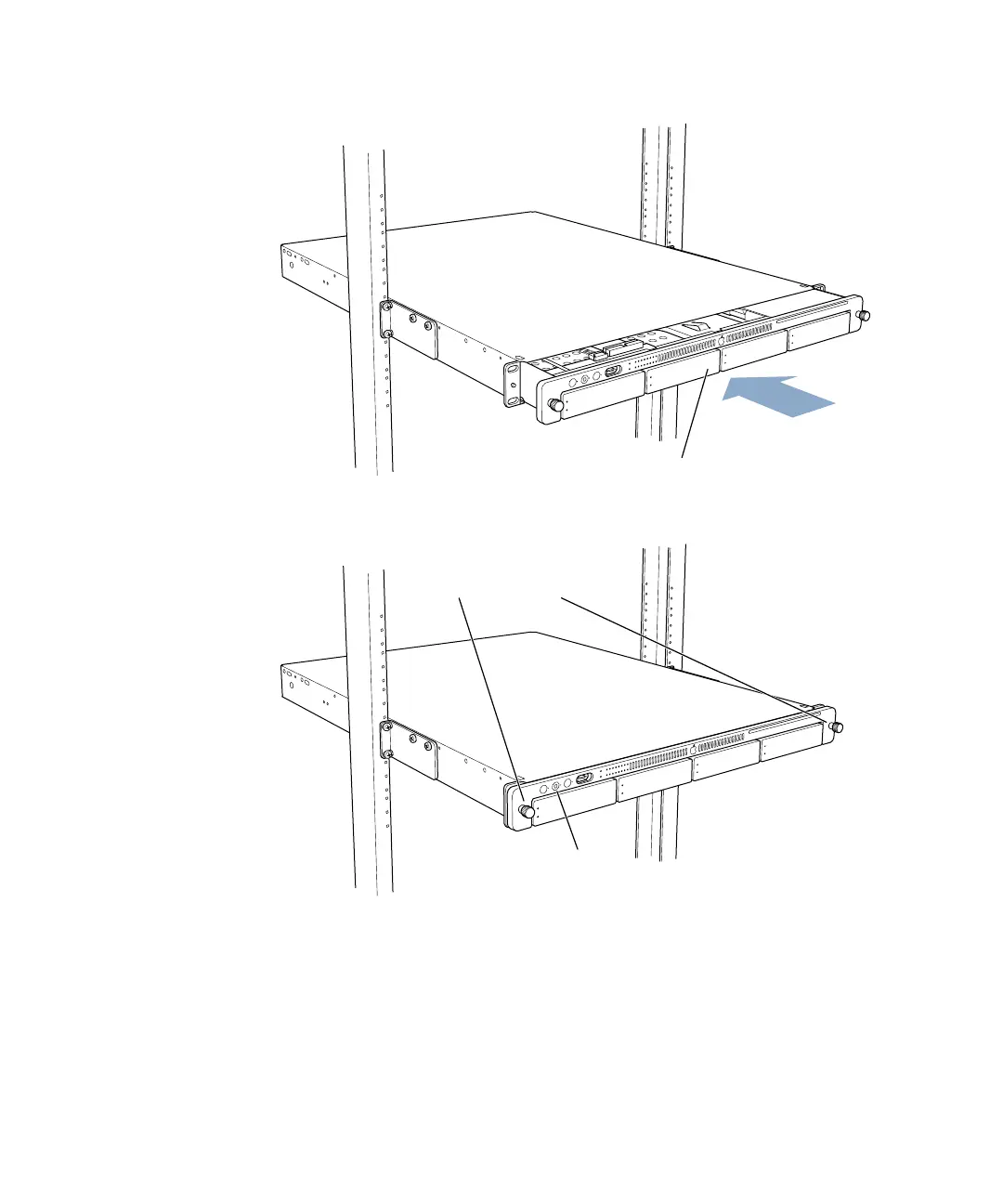 4 Secure the server in the rack by tightening the thumbscrews on the front.
