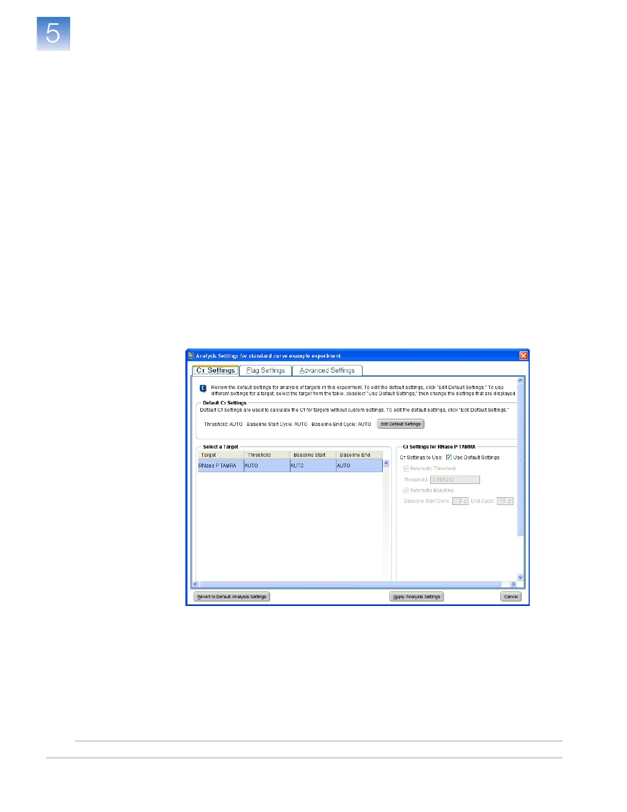 The Analysis Settings dialog box displays the analysis settings for the threshold cycle