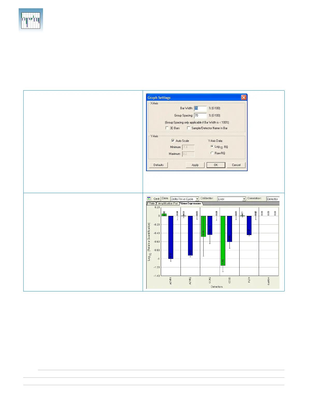 Gene Expression plots show the expression level or fold-difference of the target sample