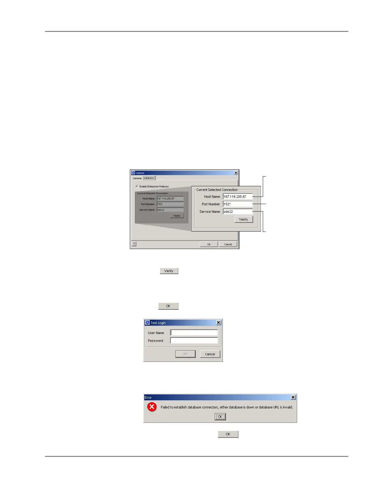 • If the SDS software is unable to successfully connect to the database, the