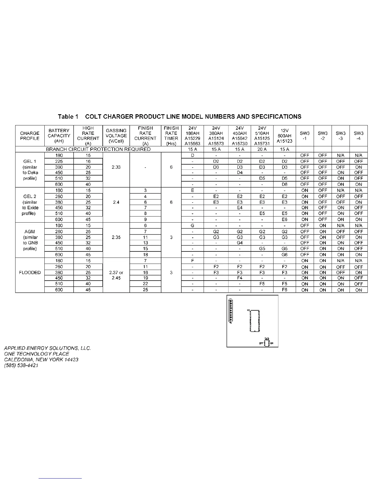 Applied Energy Colt - Colt Charger Product Line Model Numbers and Specifications