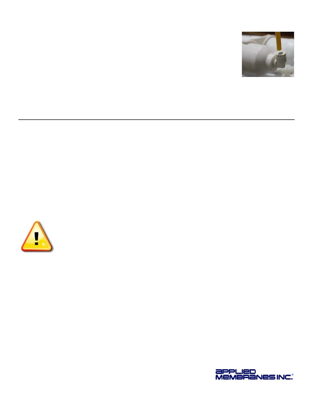 Note: Air bubbles may be present in the product water after initial system startup, causing a milky color in the