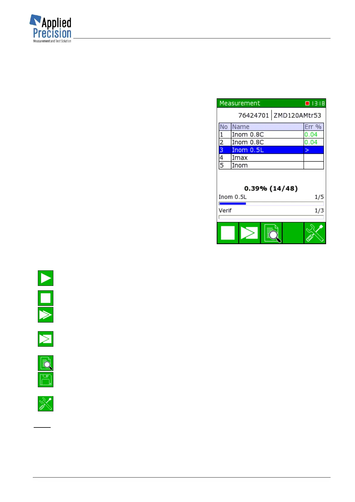 to the Measurement screen. From this screen you can run any test or all of them from selected