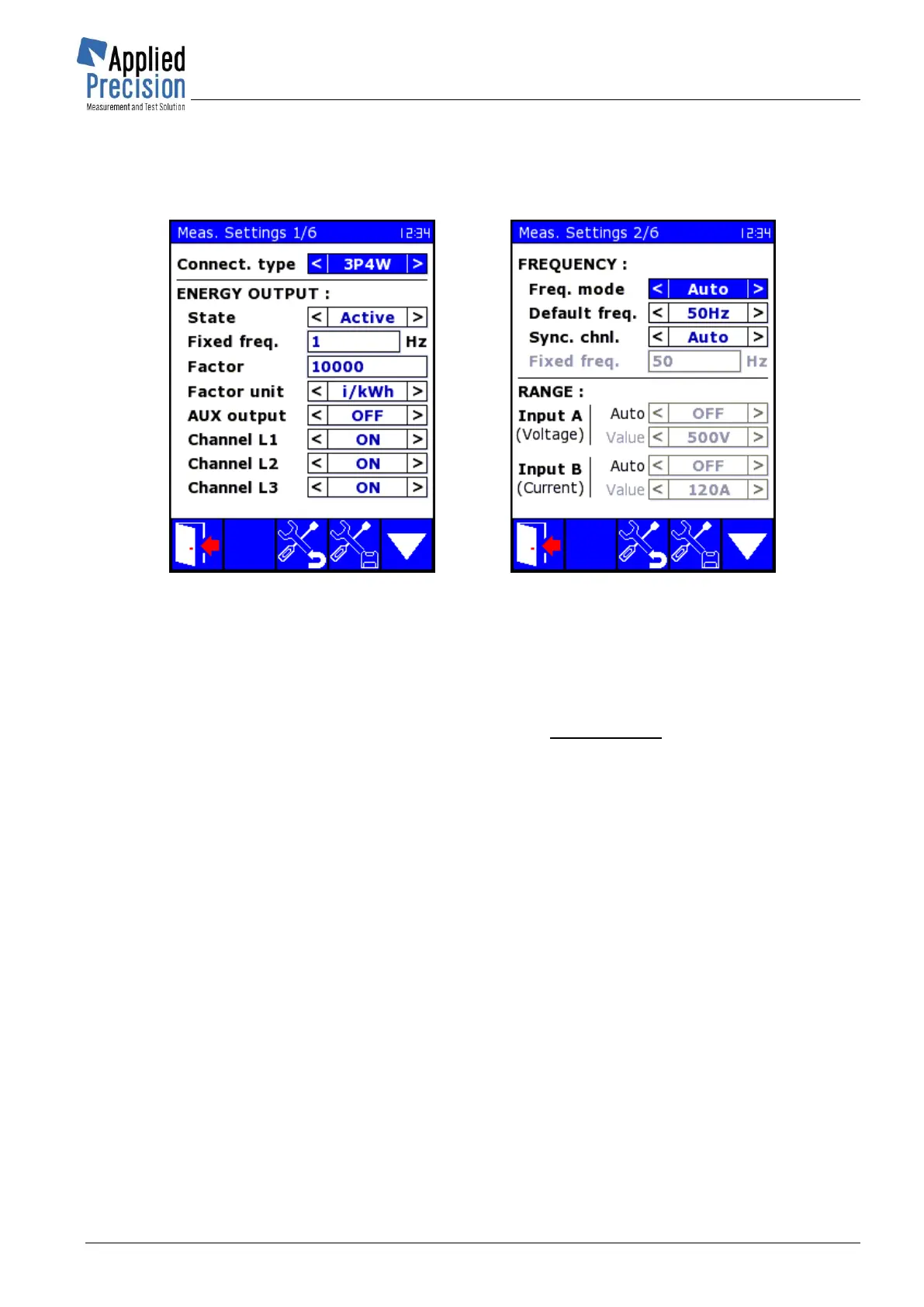 Freq. mode .................. mode of frequency measurement: Auto when Default freq. and Sync.