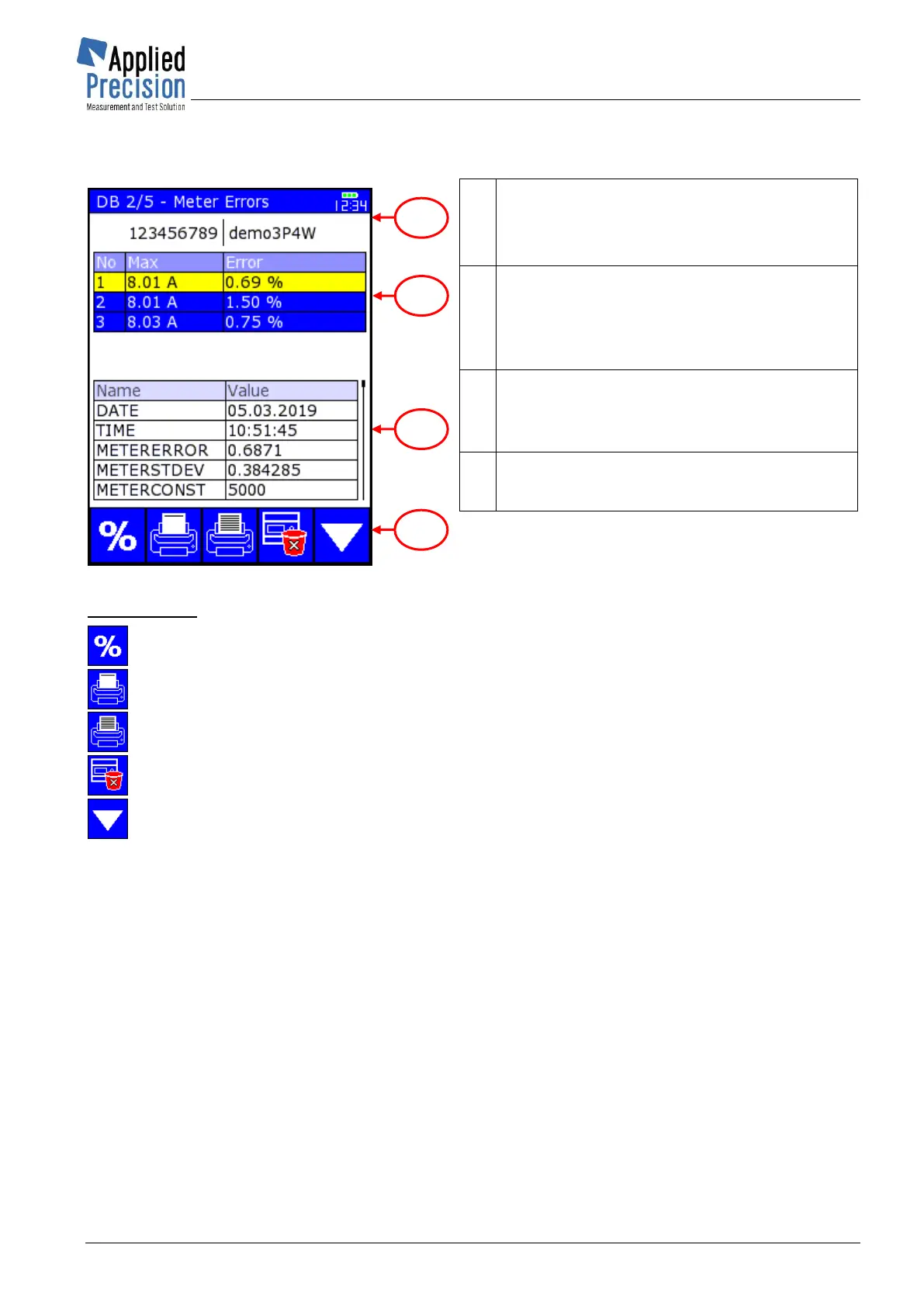 Database contains meter error tests saved for actual meter in Meter Error Test page.