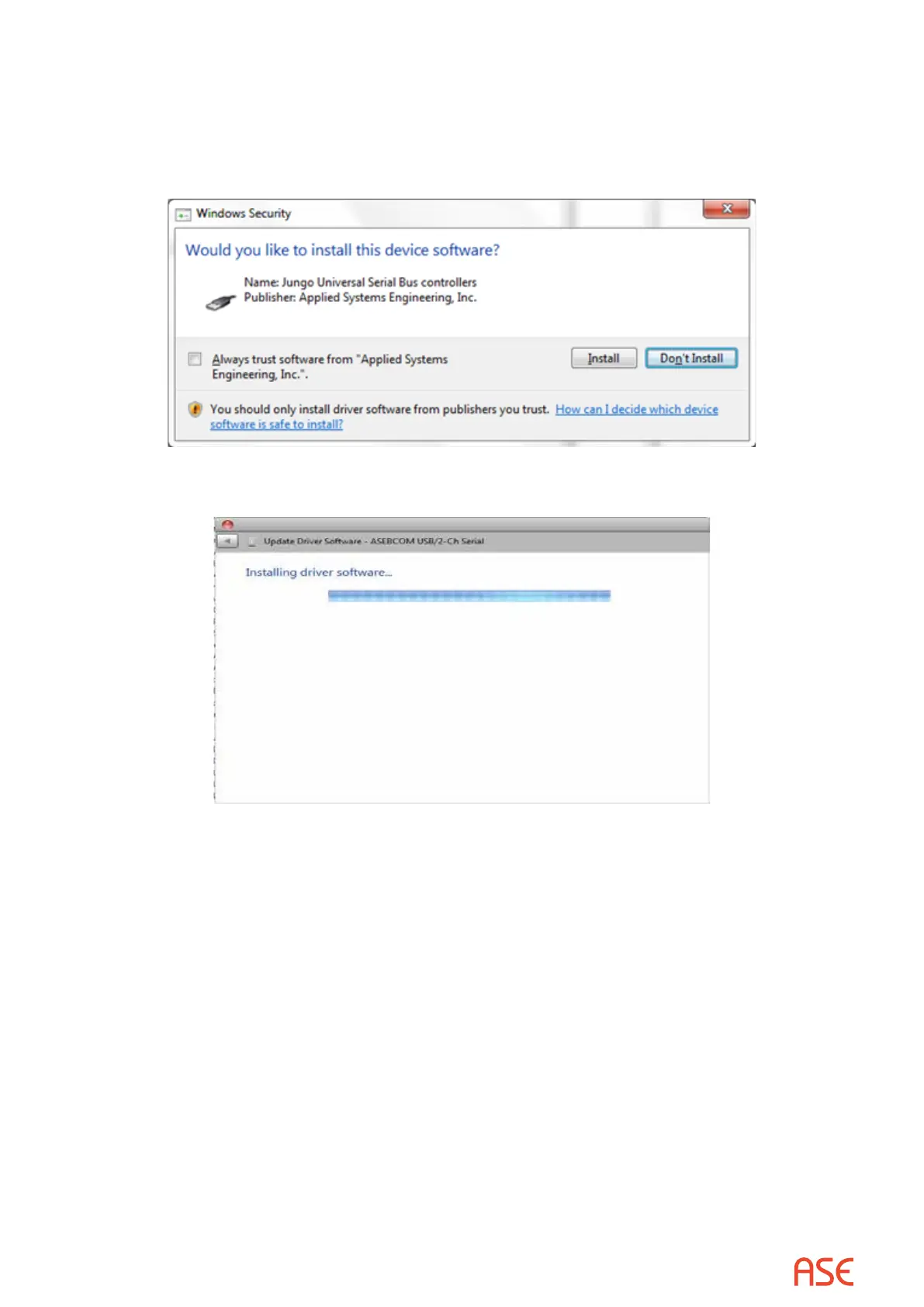 software from “Applied Systems Engineering, Inc.”> is checked before selecting the Install