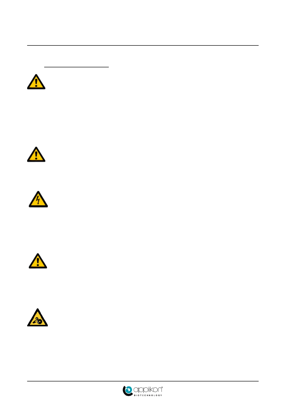 • The stirrer assembly including motor at the bioreactor is a machine with potential hazard (moving parts).