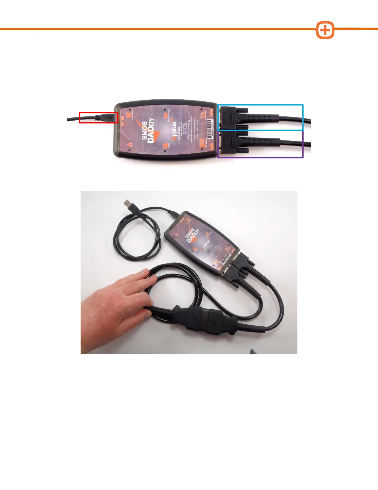 3. Connect the smaller end of the self-test cable to the Smog DADdy self-test port.