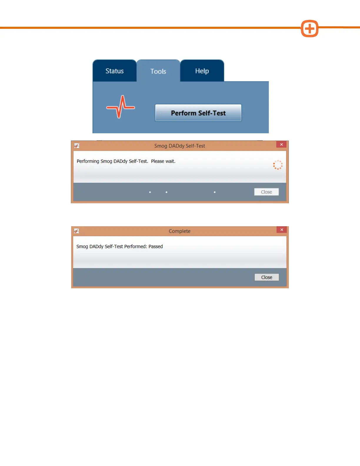 6. When the self-test has finished successfully, click Close.
