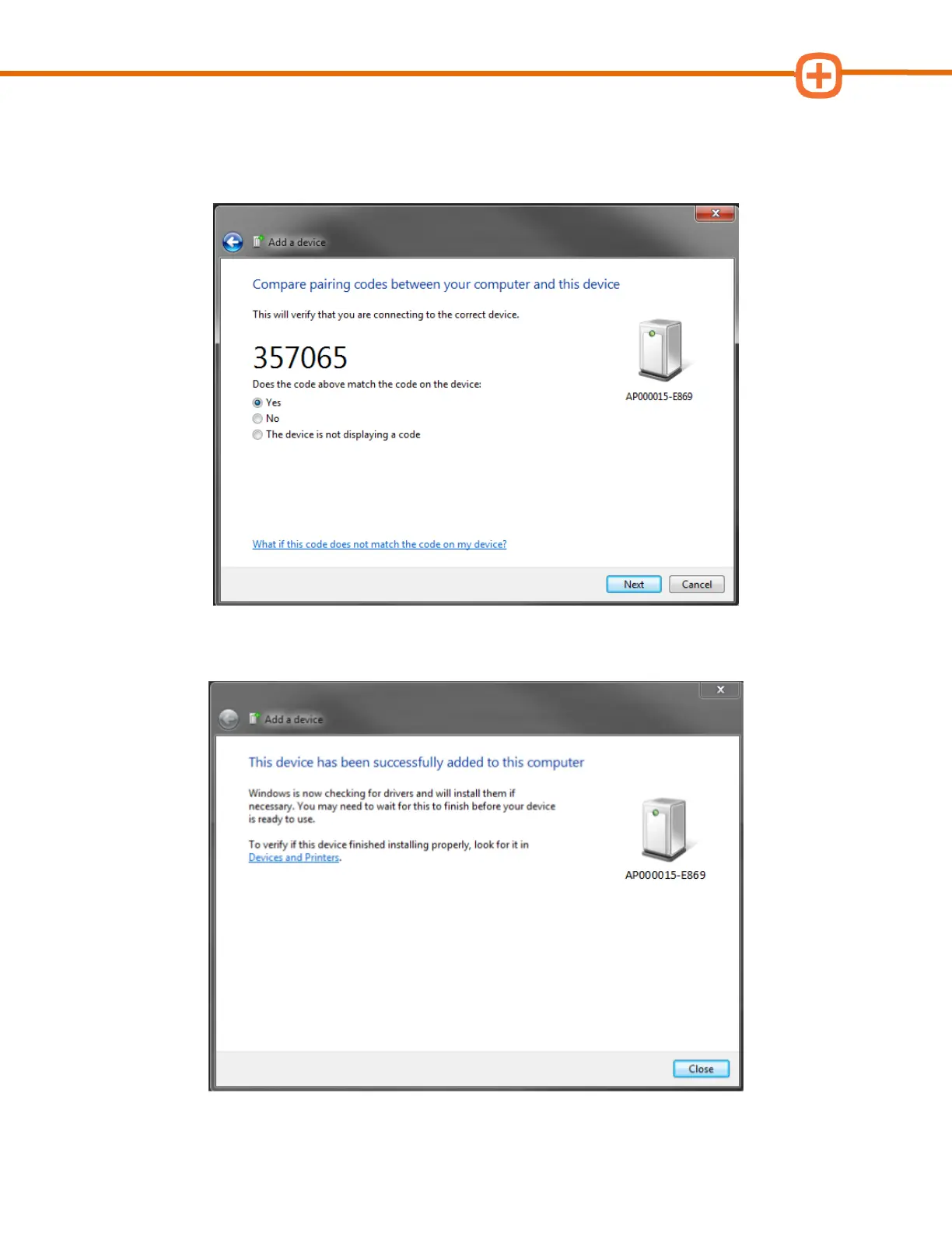 Yes and then click Next. If there is no code provided for the device enter 1234 as the