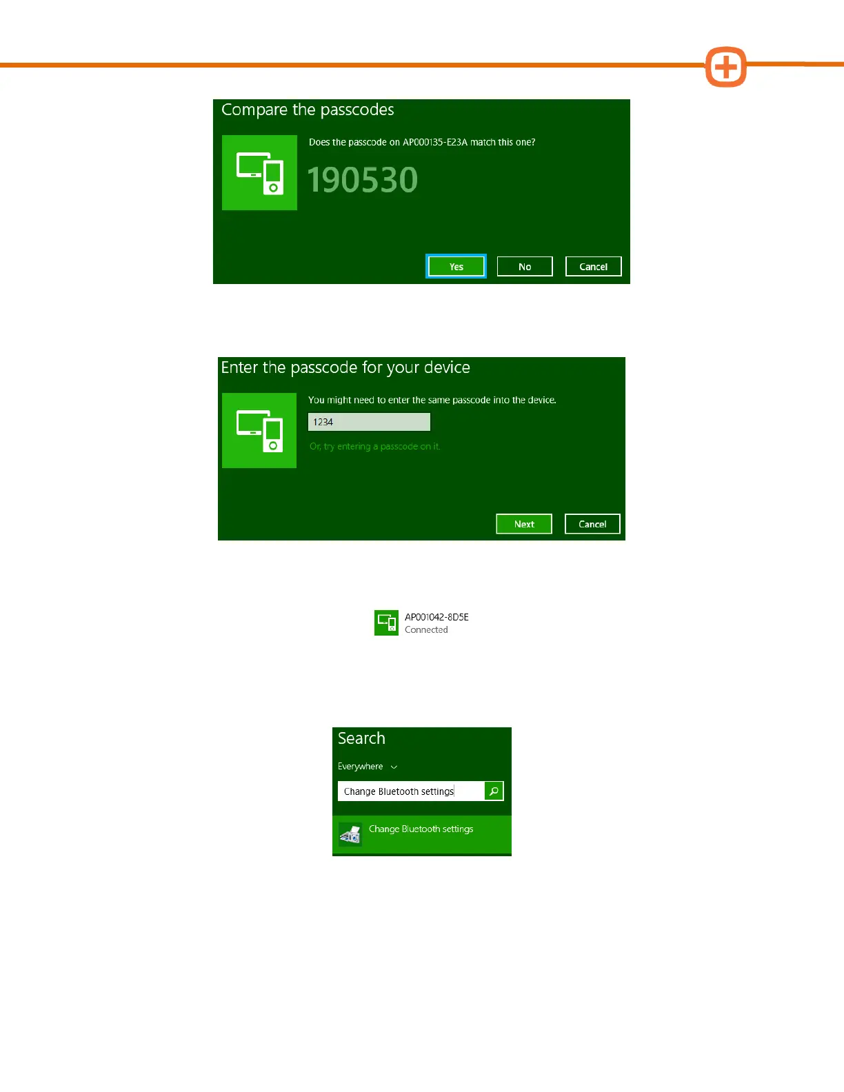 9. From PC Settings, type change bluetooth settings and select Change