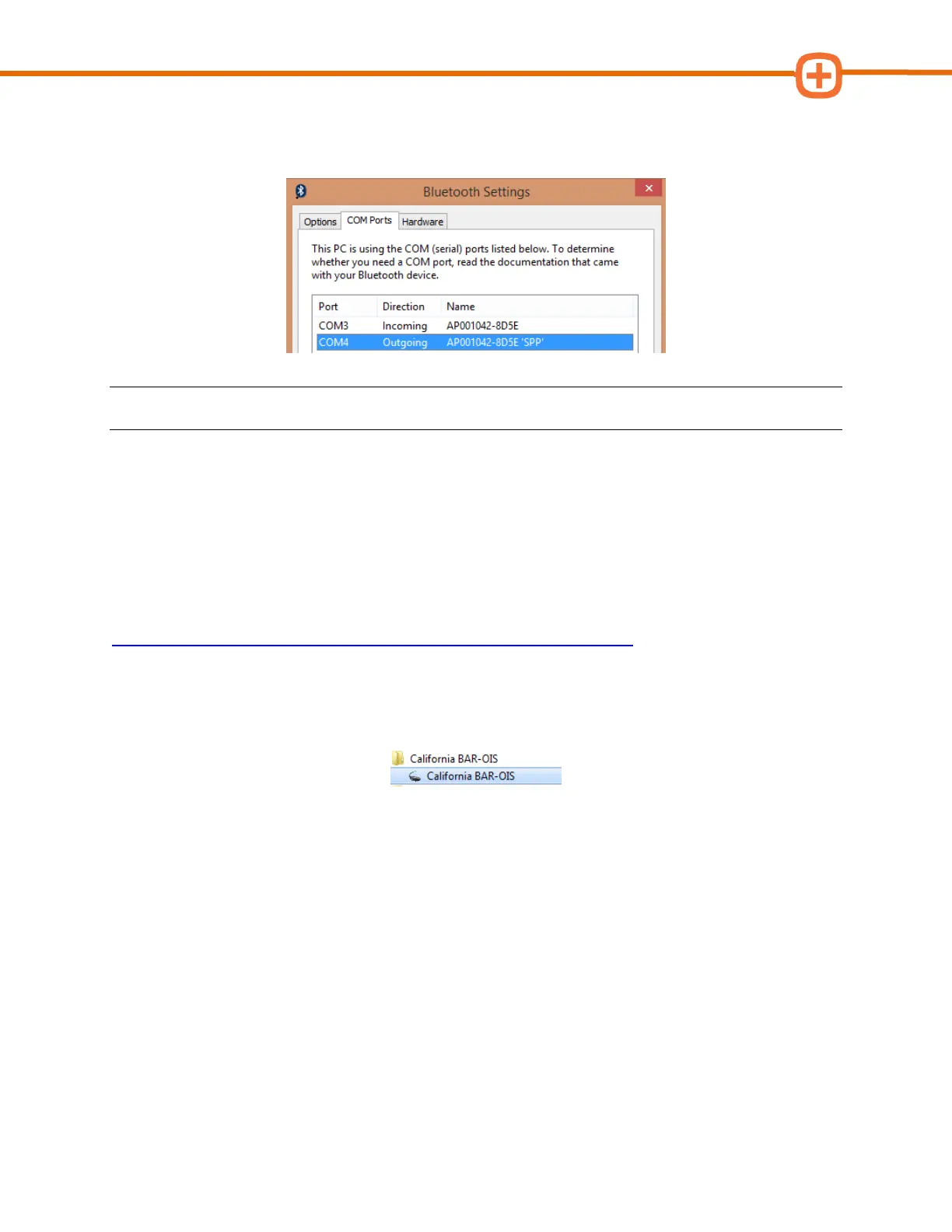 10. In Bluetooth Settings, click on the COM Ports tab and locate the Outgoing Port value