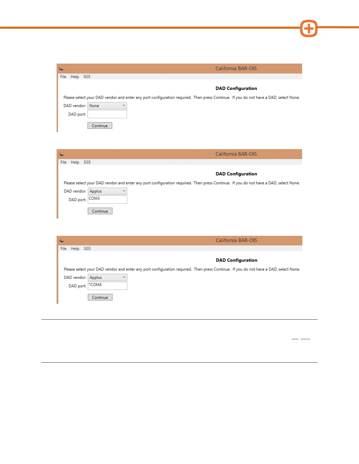 A sample screenshot for a wired DAD configured to ‘COM3’ is shown below.