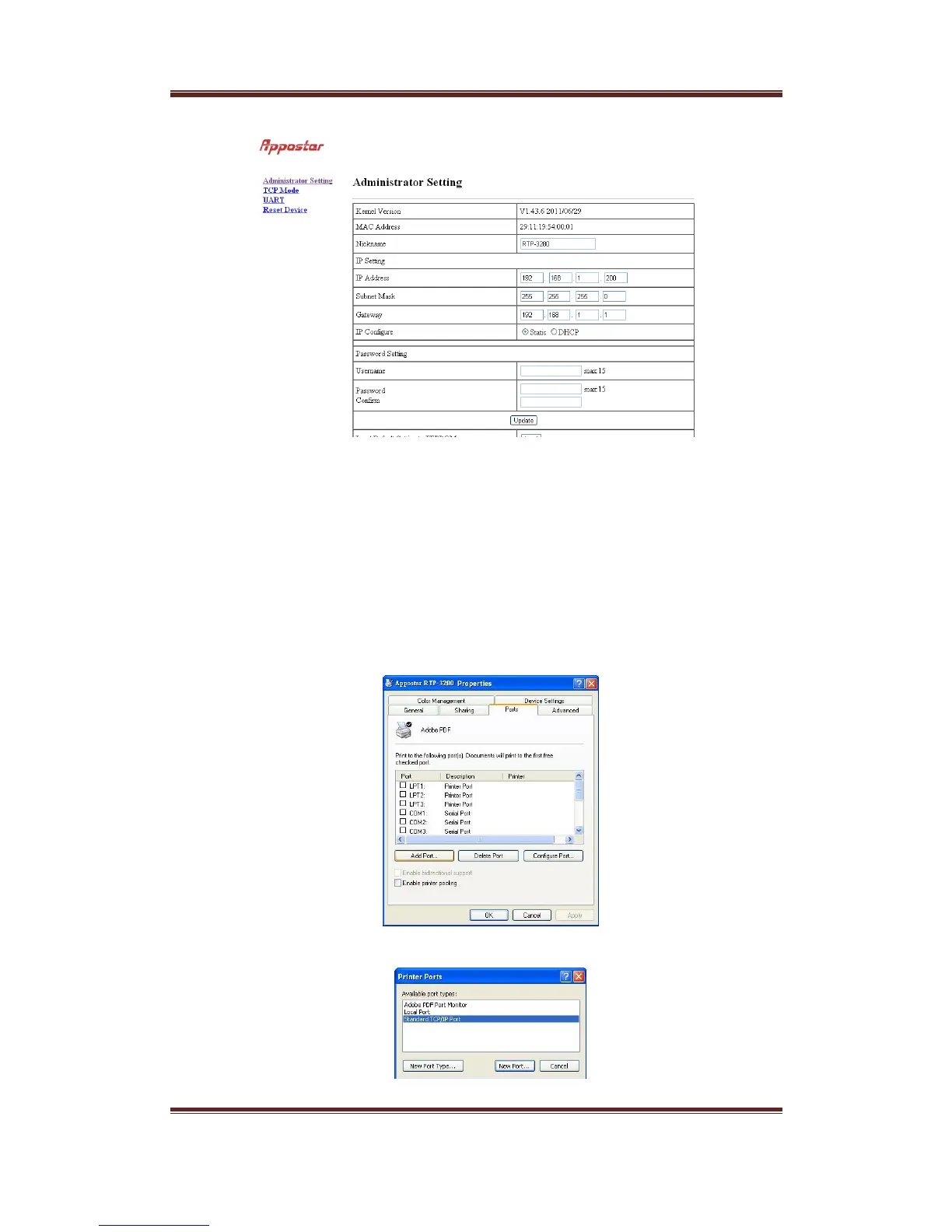TherearetwomethodsofsendingdatatoRTP‐3280forprinting.ThefirstoneisusestandardTCP/IPportas
