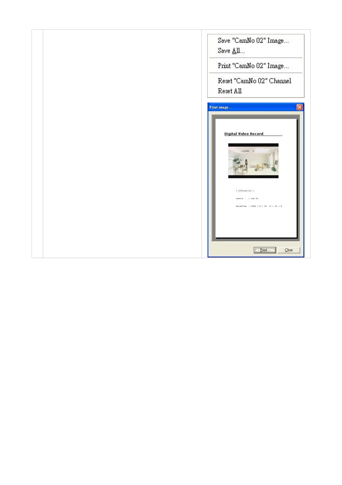 select Save "CamNo XX" Image, "Save All", Print "CamNo