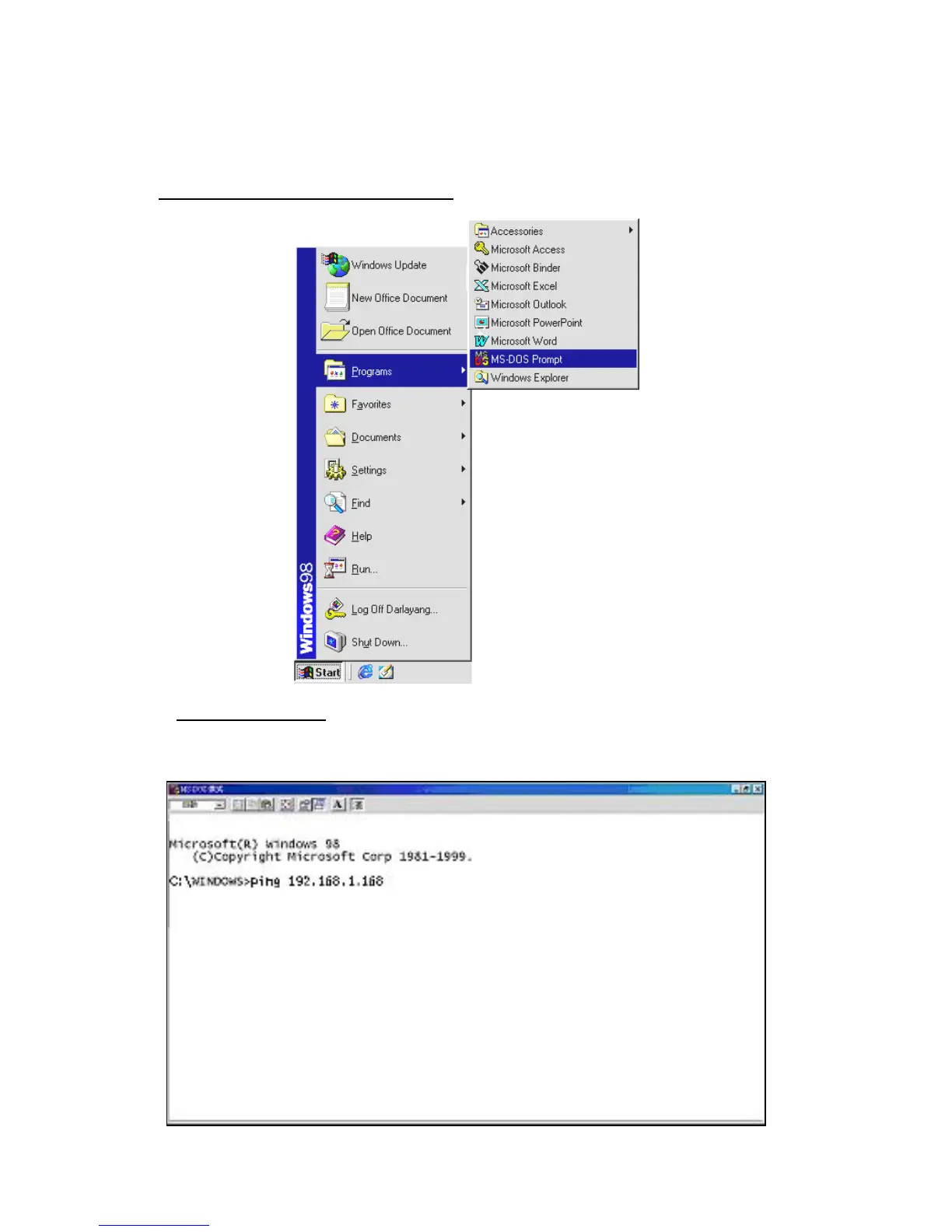 Click Start Programs MS-DOS Prompt