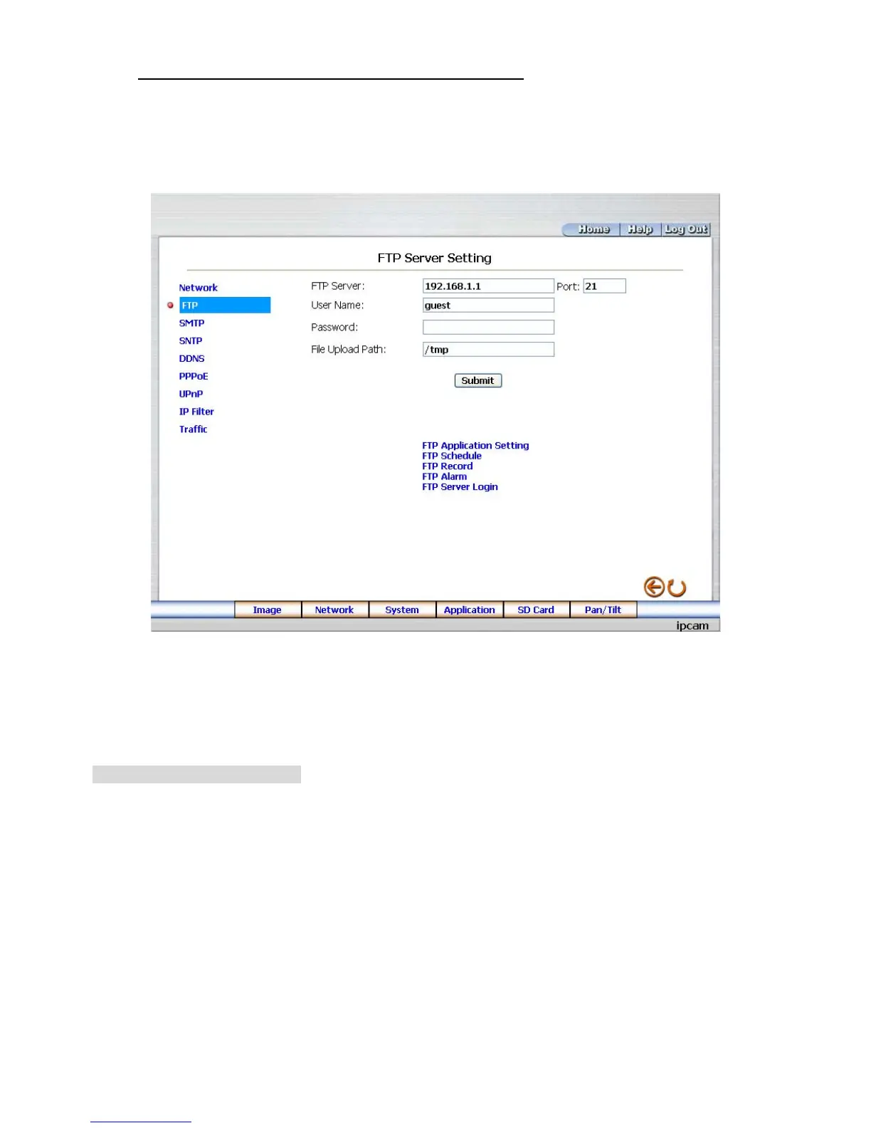 Password: Type in the FTP login password in the attached blank space (if the space is blank,