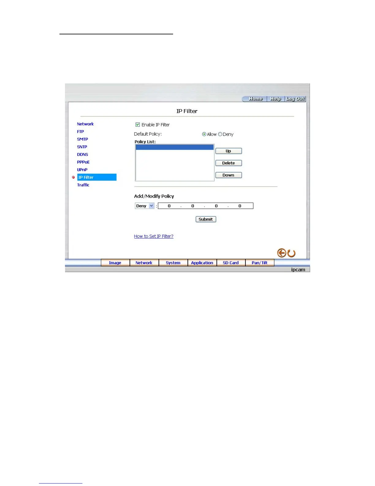 Note: The settings of the IP Filter must be correct or you may not able to operate the device regularly. In