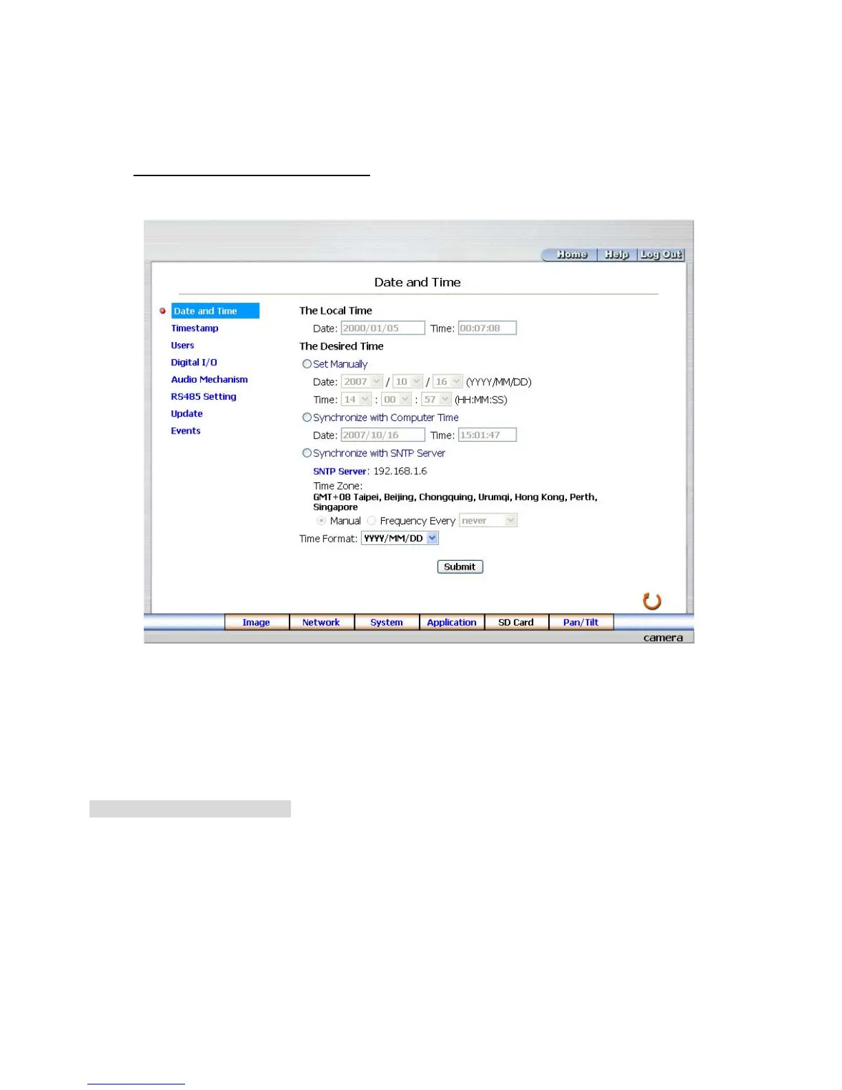 2. Choose one of the three modes shown on the page to set the Date and Time of the system. The three