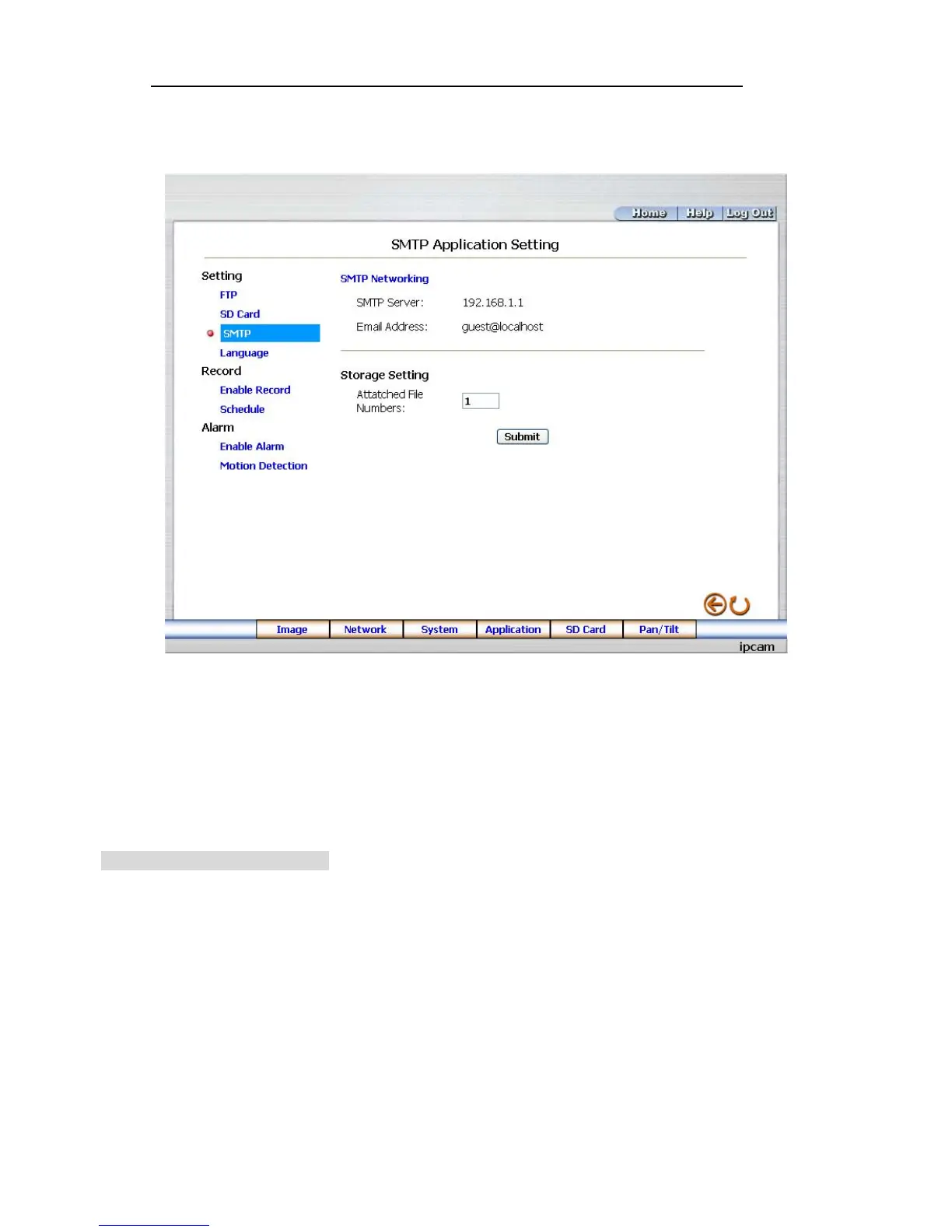 Change the Application Setting —SMTP Application Setting (MJPEG mode only).