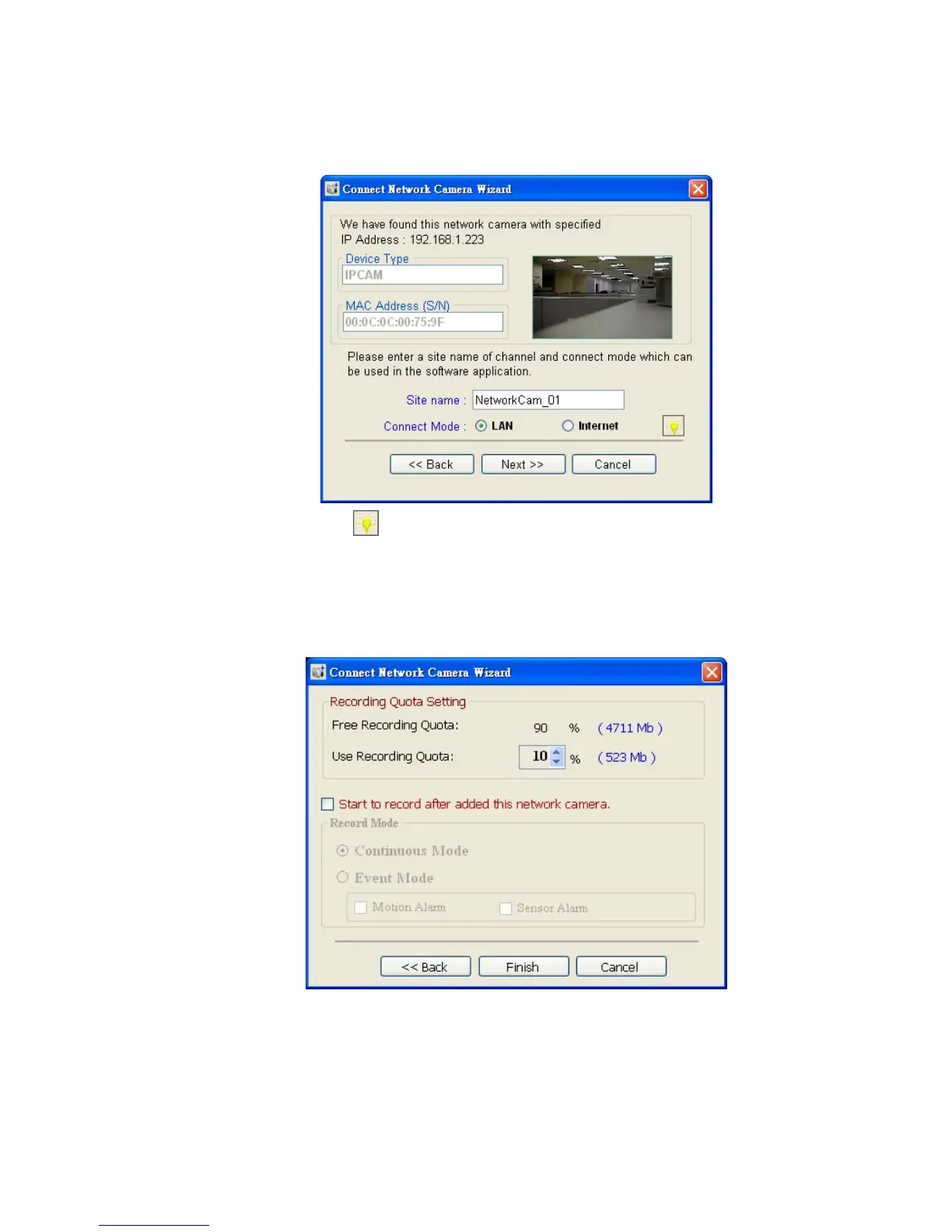 to access the next "Connect Network camera Wizard" page.