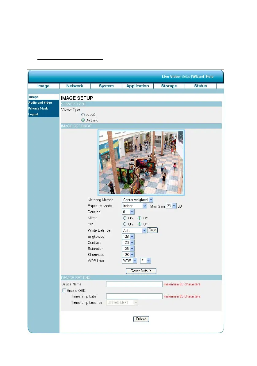 The Image Setup setting page