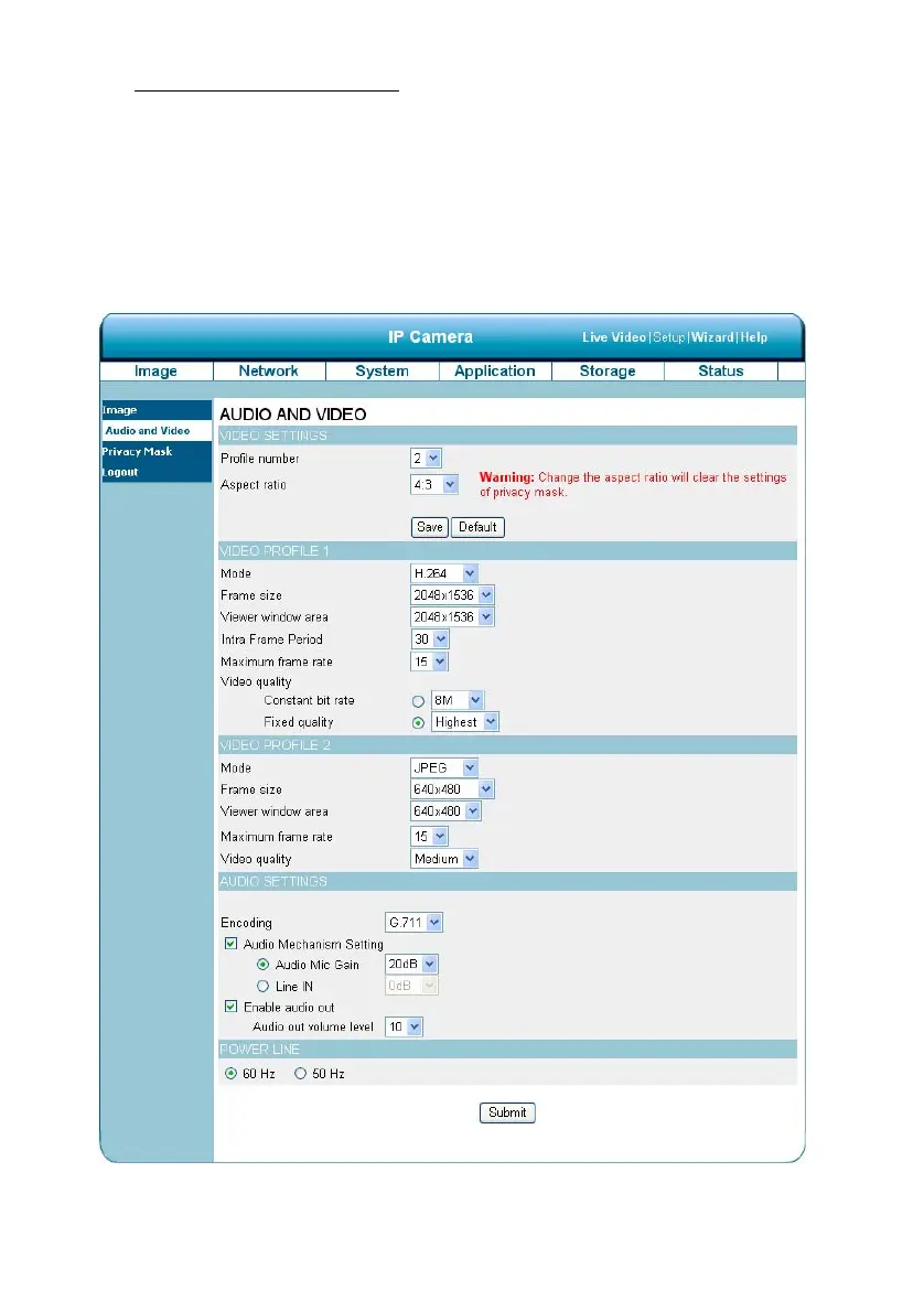 1. Click on the Audio and Video button to enter the Audio and video page to set the details of