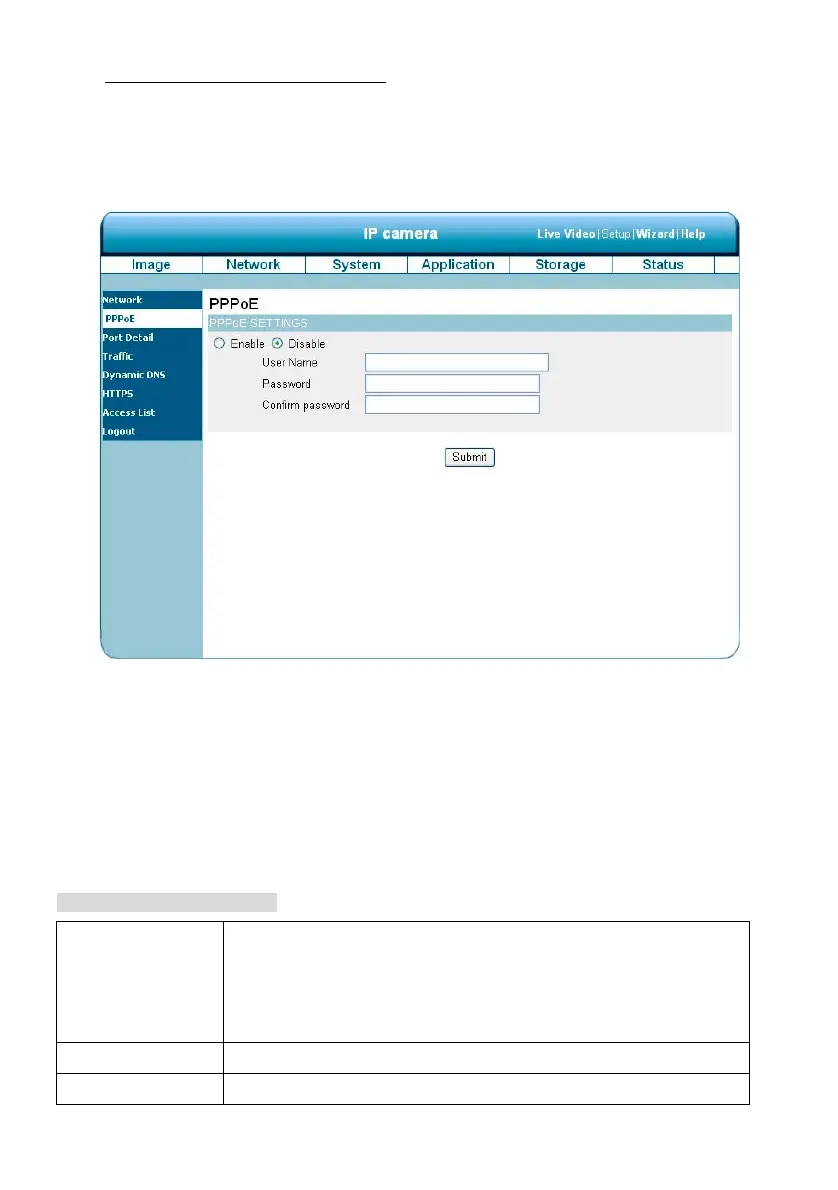 PPPoE Setting If you use the camera to connect directly to the Internet, you will need to