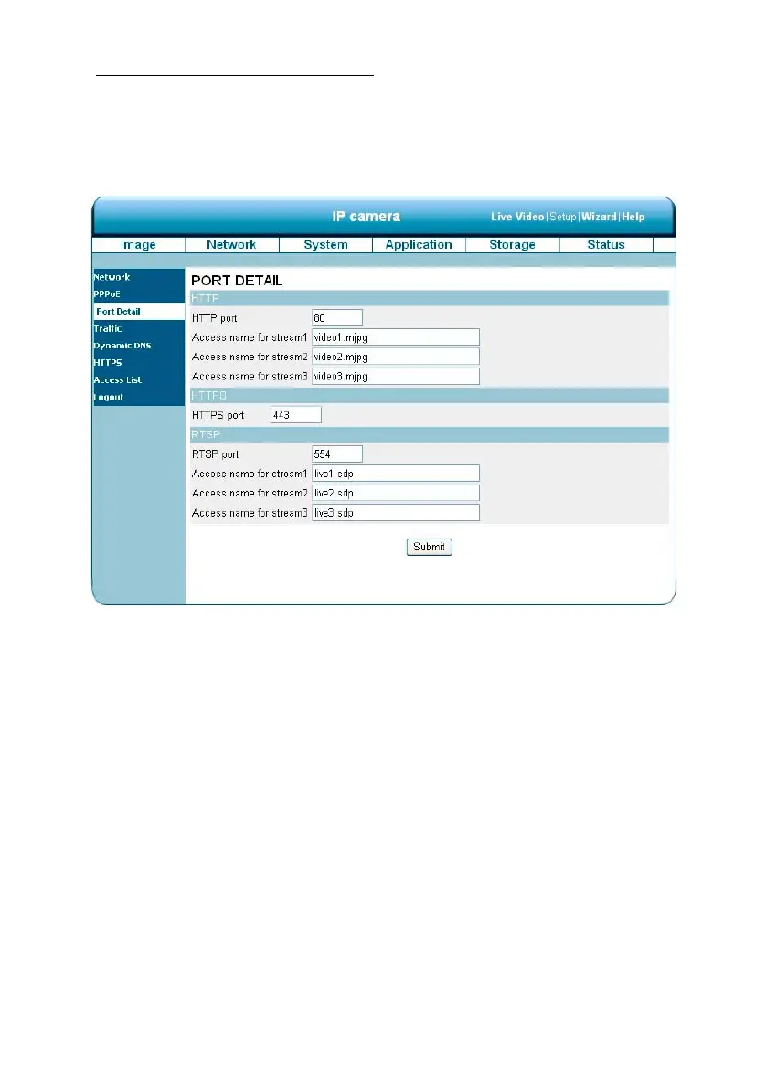 ports for both the HTTP and RSTP streaming. Please follow the steps below to change the Port Detail