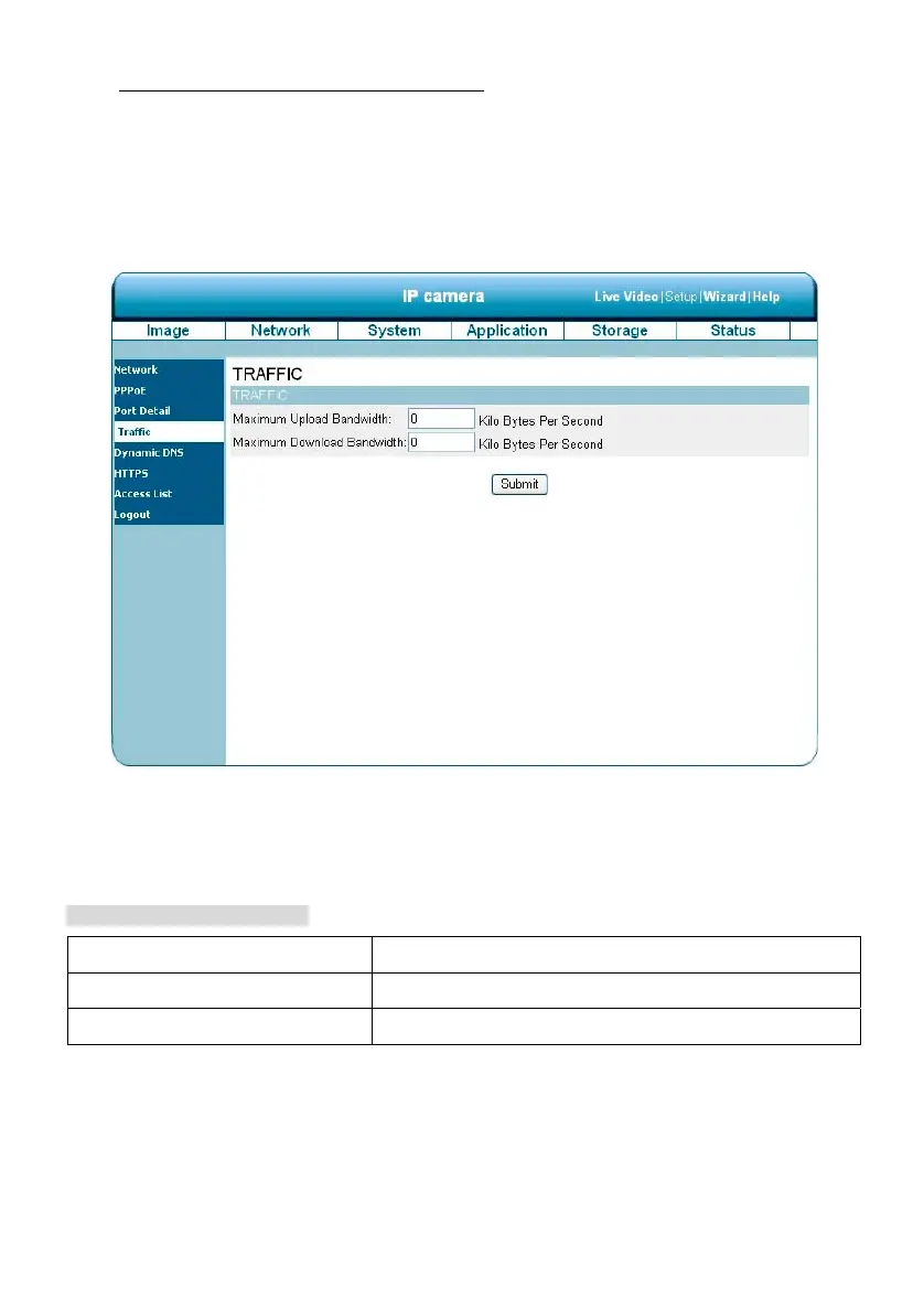 The “Network” page has, on its upper left, the “Traffic” icon. Specifying the maximum download/upload