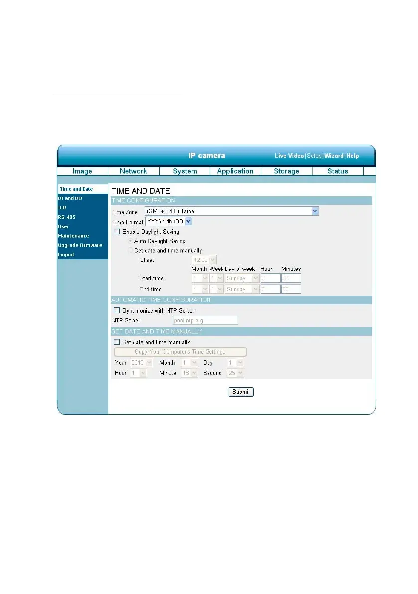 1. Click on the System button to enter the “Time And Date” page (default).