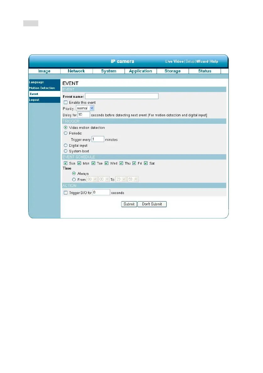 Click on the Add button in the Event column to enter the “Event” setting page.