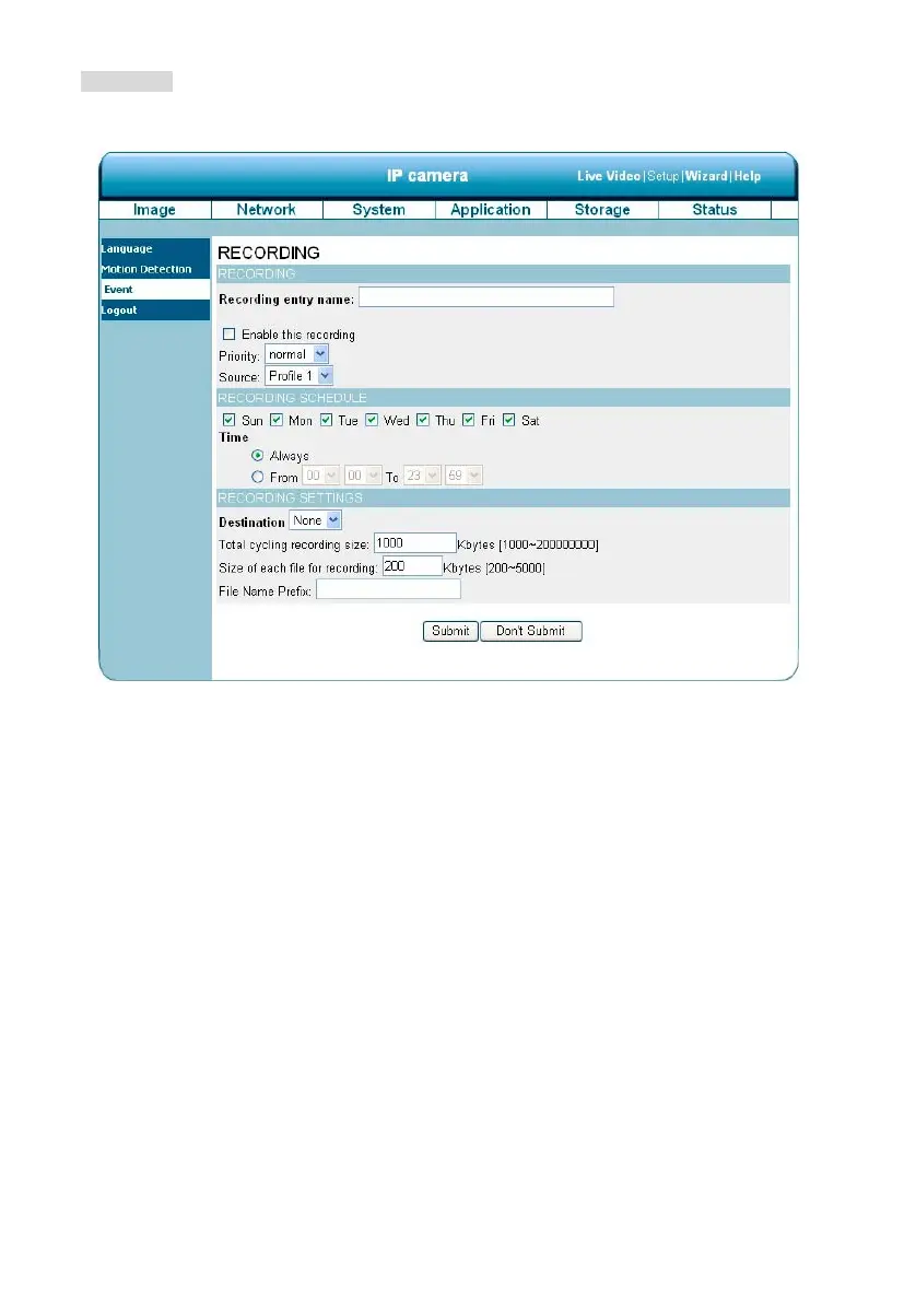 Click on the Add button in the Recording column to enter the “Recording” setting page.