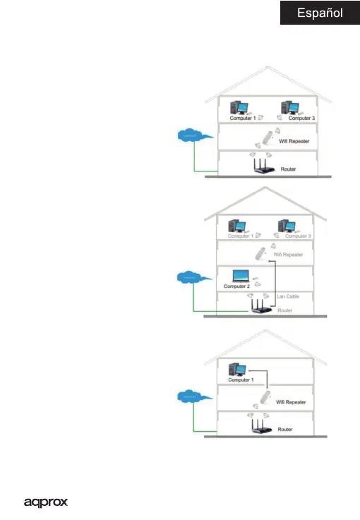 Este repetidor dispone de tres modos de conguración e instalación con
