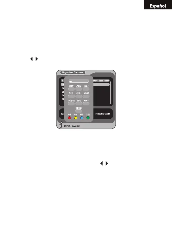 3. Para renombrar un canal presione las teclas de dirección Izquierda/