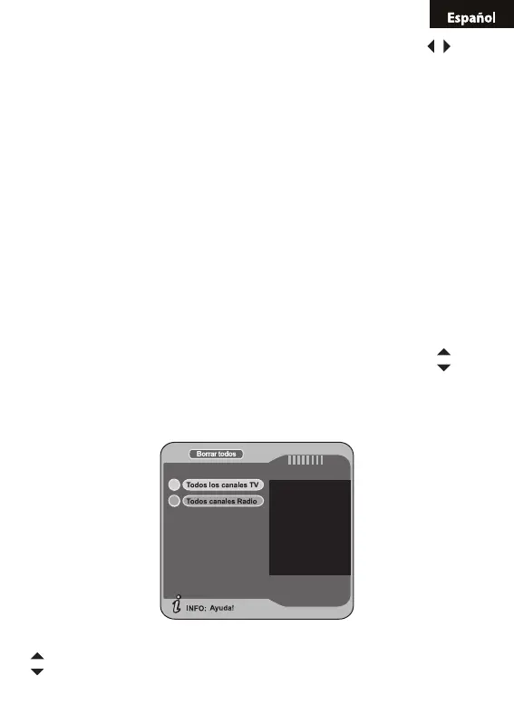 1. Para borrar todos los canales de TV, presione las teclas Arriba/Abajo