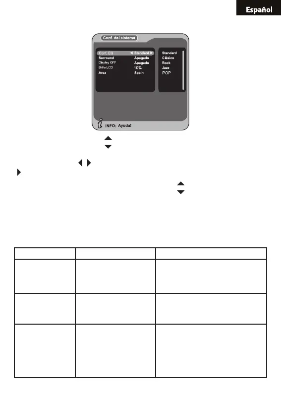 desplazarse mediante las teclas Arriba/Abajo “ ”, conrmando la selec-