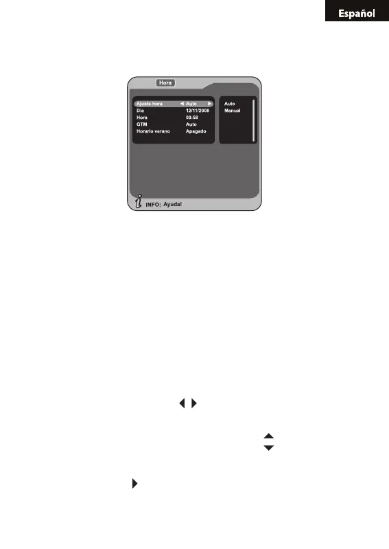 A través de “TV Digital > Conguración > Hora” del menú principal, pue-