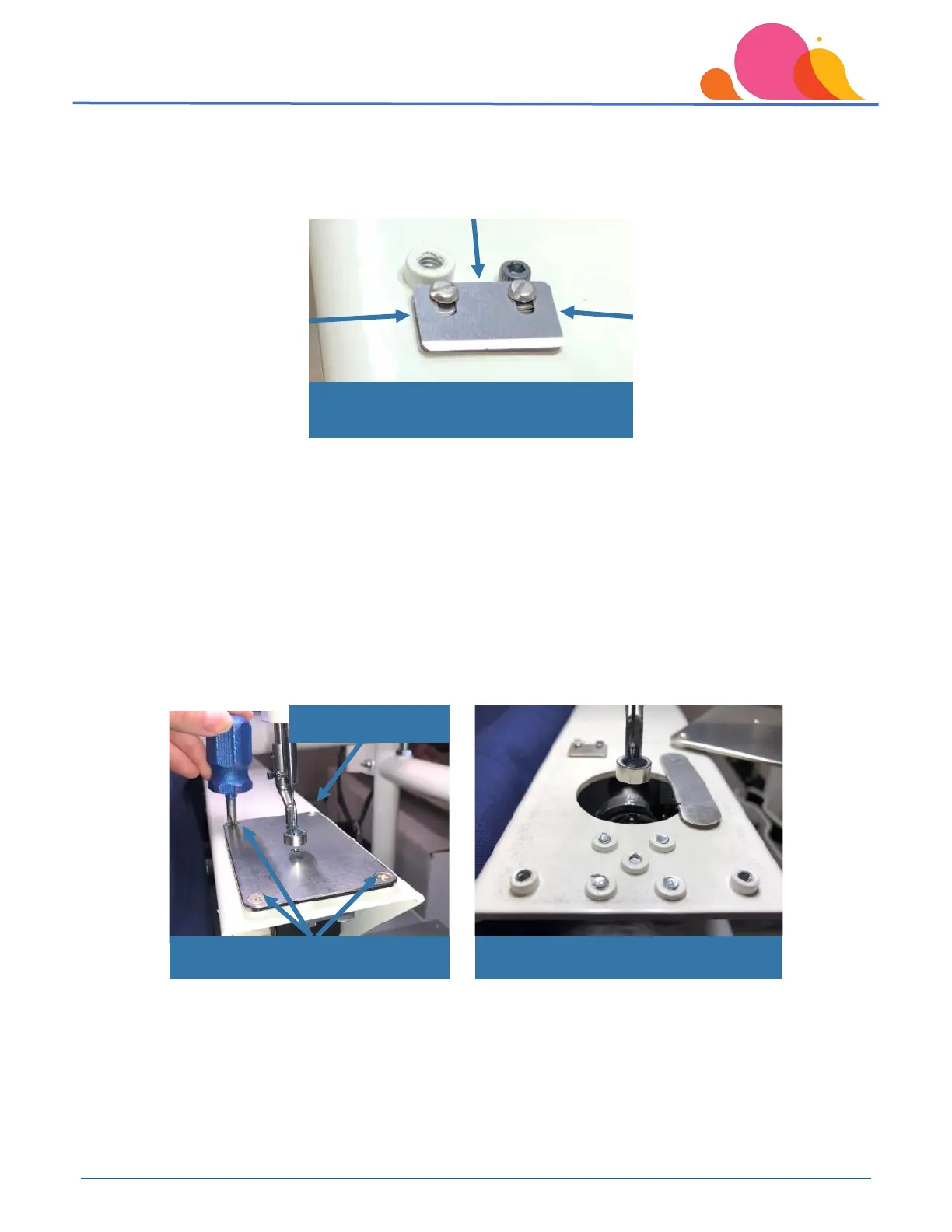 on the needle plate. Loosen the right rear screw, and pull the needle plate off to the right side of the machine.