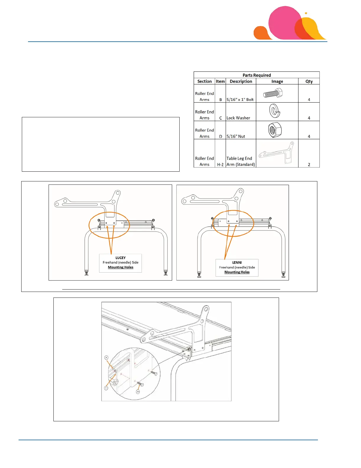 1. Note the different placement for the End Arm Mounting Holes for the Lucey versus the Lenni.