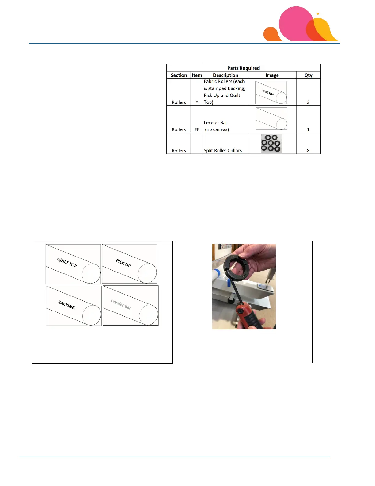 Locate the roller labled “Pick Up” (each of the fabric rollers have stamped labels of “Pick Up”, “Backing” and “Quilt