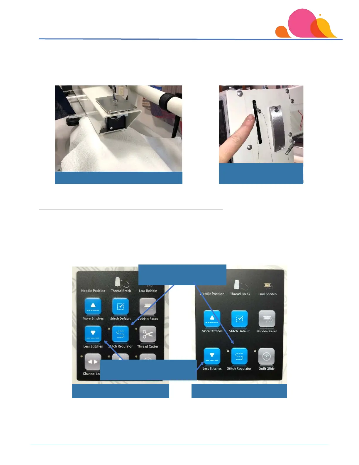 Regulator button on your front cover to be able to use manual mode. Then, press the “Less Stitches”