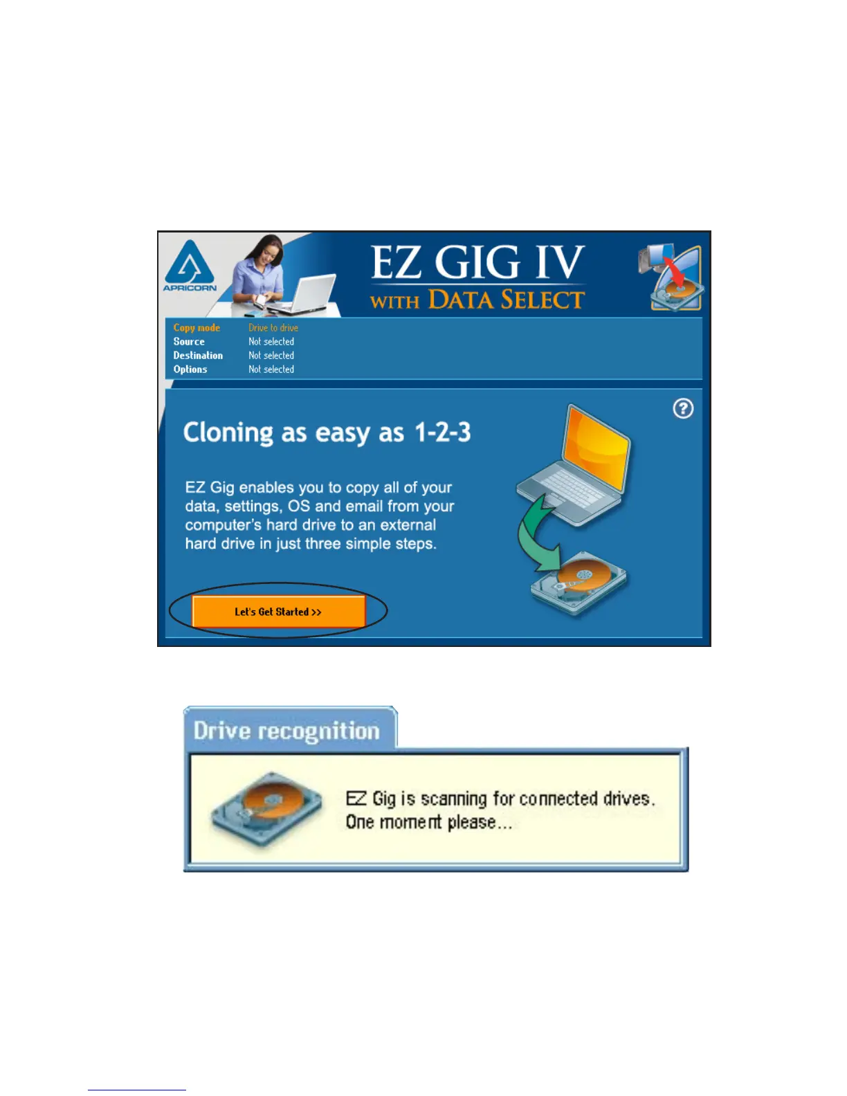 EZ Gig will then scan for connected drives. This may take a few 2.