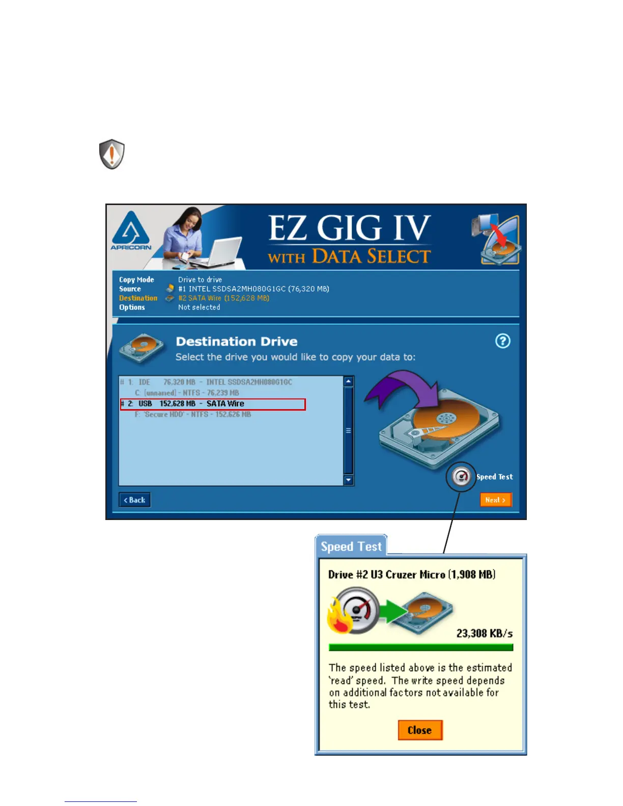 Selecting the Destination Drive