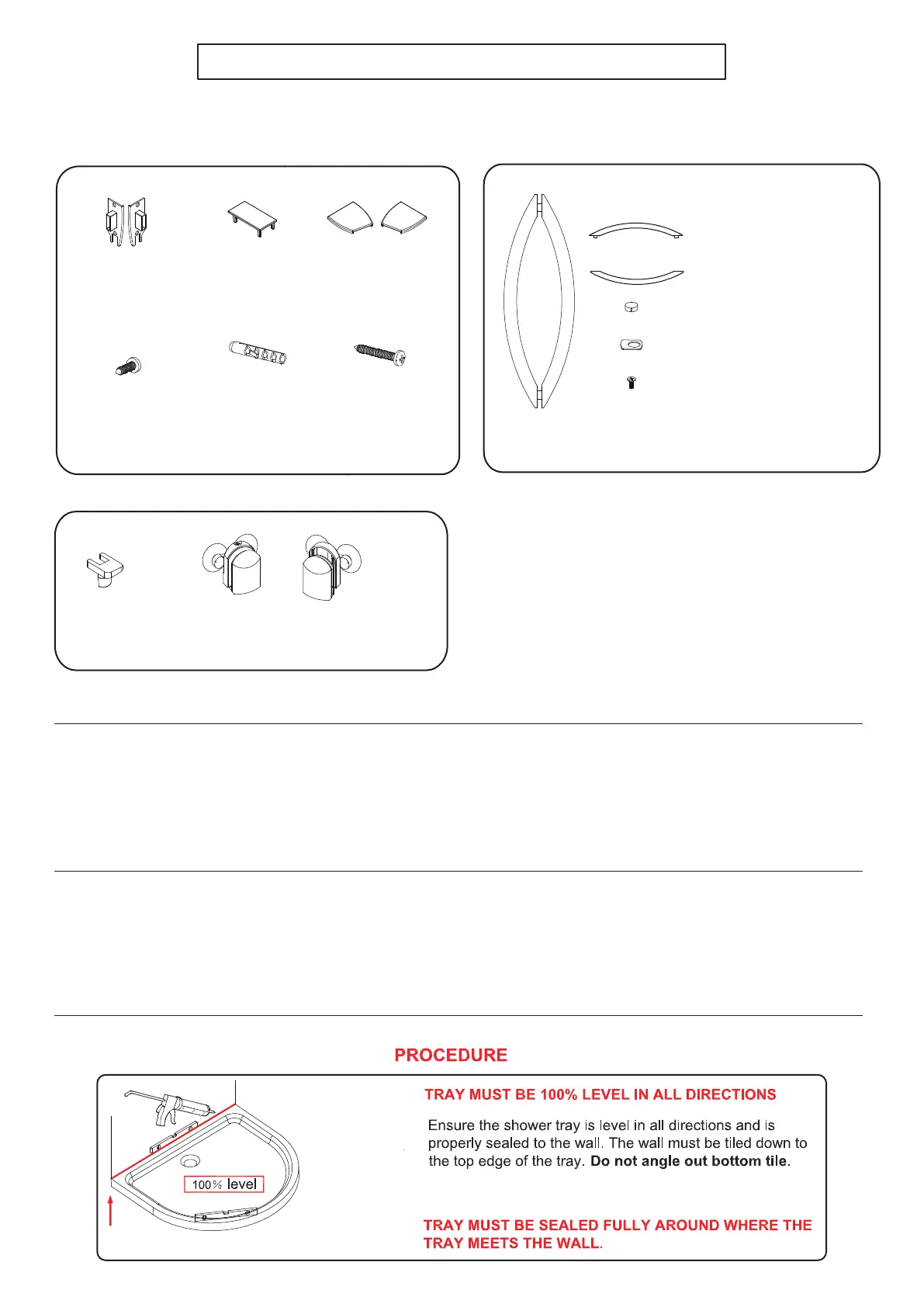 1. Ensure the top surface of the shower tray on which the enclosure will be installed is level in every direction.