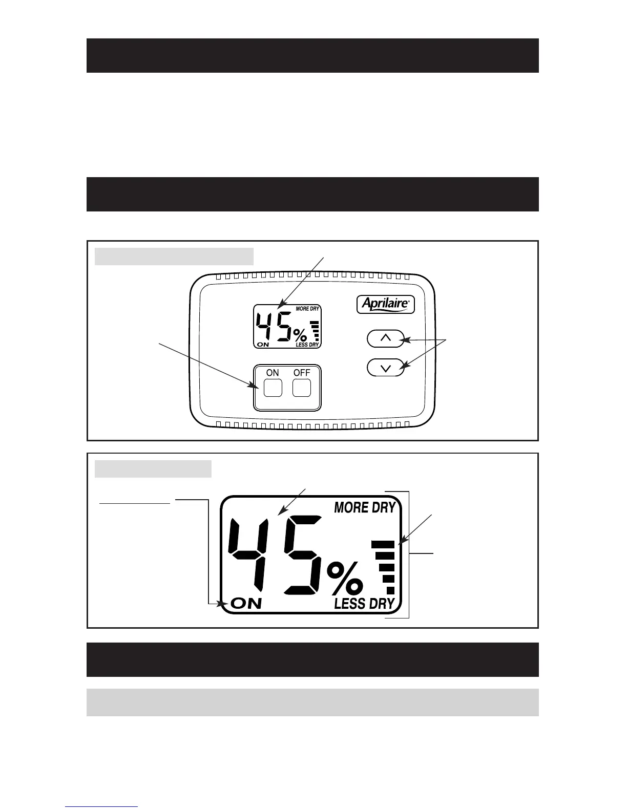 !" buttons allow you to adjust the dryness set point from “LESS DRY” to “MORE DRY”.