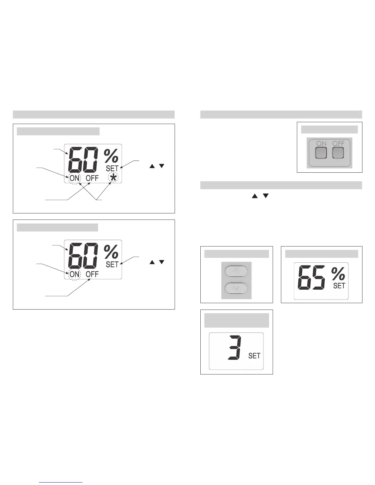 •Ifabuttonishelddown,thesettingwillcontinuallychangeby1%or1drynesslevelevery