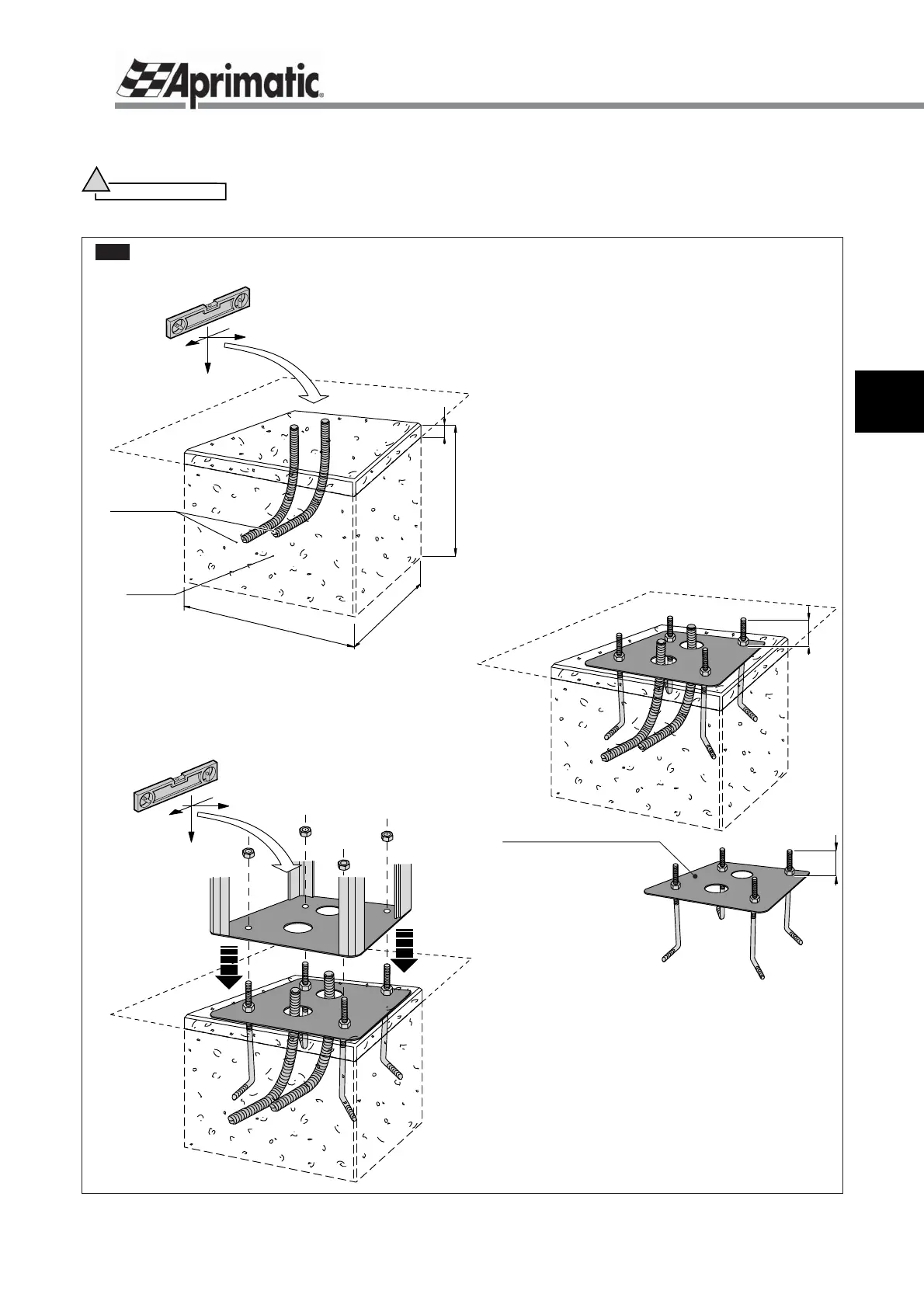 must be mounted on a fl at, solid surface; therefore it is necessary to prepare a concrete base for it (