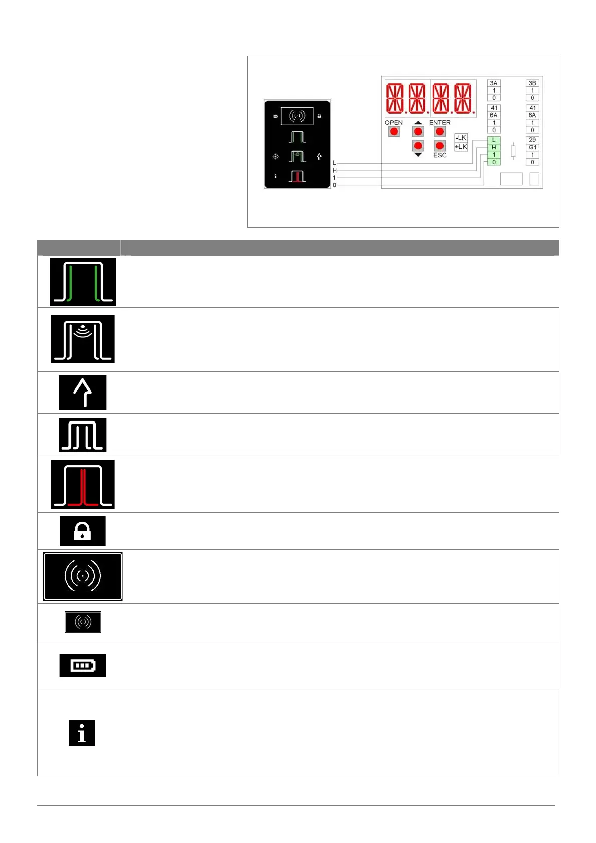 Information symbol on = it is necessary to perform the ordinary maintenance of the door.