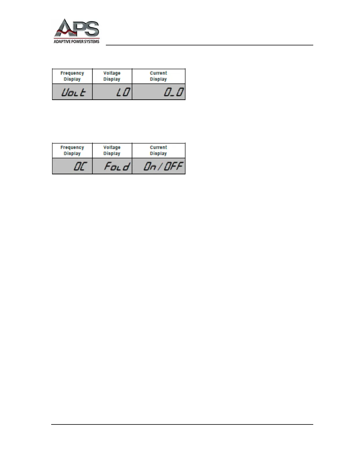 Voltage Lo Limit. Press the CURRENT ︿ or ﹀ buttons to adjust the voltage limit value